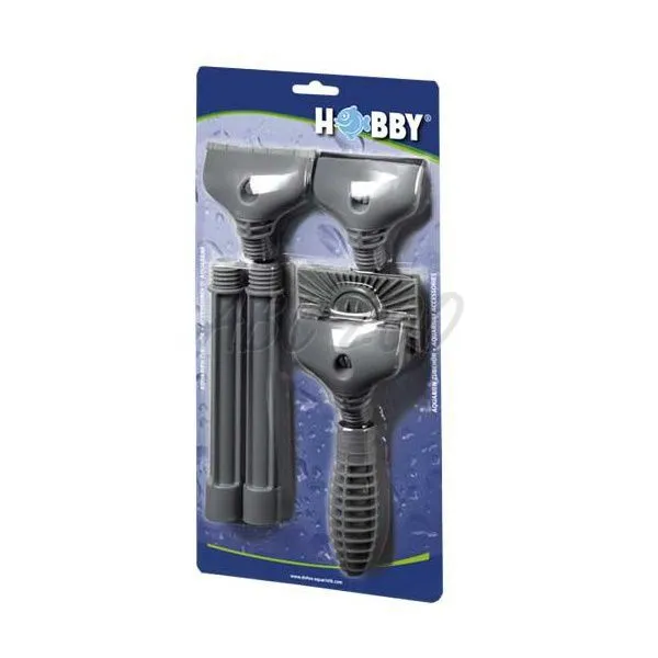 Čistiaci set do sladkovodného alebo morského akvária obsahuje: čistiaca hubka, gumená škrabka, škrabka s nerezovou čepeľou, dva predlžovacie nástavce 15 cm, ergonomická rukoväť 10 cm. Viac detailov
