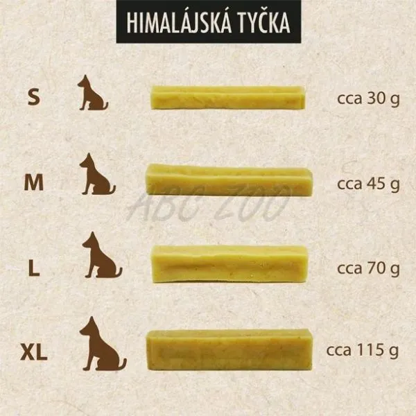 Tyčinka je vyrobená podľa receptúry z Himalájí, kde pastieri mesiace nechávali zrieť mlieko z Jaka a kravské mlieko a neskôr ho pri pastve žuvali. Mlieko sušením stráca väčšinu laktózy, ale proteíny a vápnik zostávajú. Pre psov je to tak perfektná dentálna / proteinová maškrta, ktorá dokáže zabaviť psíka aj na niekoľko hodín. A psíkom žuvanie tvrdého "syra" naozaj chutí!