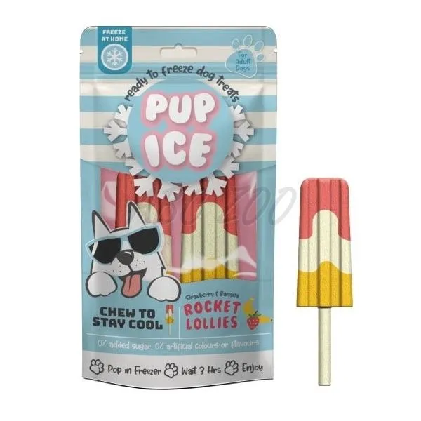 Pup Ice je tuhá pochúťka, ktorú si môžete dať doma zmraziť. Nemusíte sa báť neporiadku, roztekania alebo kvapkania. Produkt bol vytvorený tak, aby sa psí jazyk neprilepil na produkt, ako to môže byť pri bežnej mrazenej pochúťke. Maškrty majú pridaný vápnik a prebiotiká pre ďalšie zdravotné výhody.