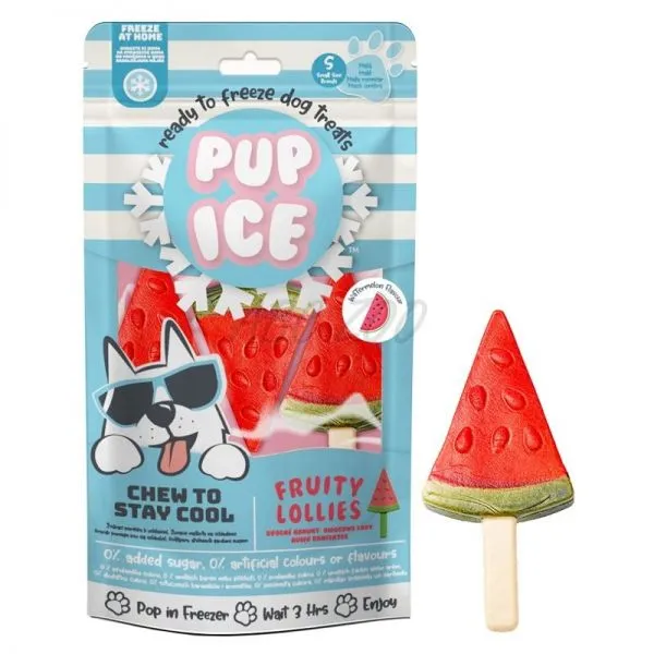 Pup Ice je tuhá pochúťka, ktorú si môžete dať doma zmraziť. Nemusíte sa báť neporiadku, roztekania alebo kvapkania. Produkt bol vytvorený tak, aby sa psí jazyk neprilepil na produkt, ako to môže byť pri bežnej mrazenej pochúťke. Maškrty majú pridaný vápnik a prebiotiká pre ďalšie zdravotné výhody.