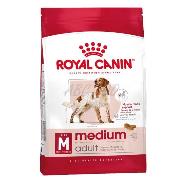ROYAL CANIN ® Medium Adult je nutrične kompletná a vyvážená receptúra ​​špeciálne navrhnutá tak, aby vyhovovala konkrétnym potrebám vášho psa strednej veľkosti a podporovala ho po celú dobu jeho dospelosti. Táto strava je určená pre psy strednej veľkosti, ktorí vážia medzi 11 a 25 kg a sú staršie ako 12 mesiacov. Stredne veľké psy potrebujú dôsledné cvičenie pre správny vývoj svalov. Táto receptúra ​​je vytvorená tak, aby pomohla udržať svalovú hmotu vďaka svojmu špecializovanému, vysoko kvalitnému obsahu bielkovín. Ich energický životný štýl vystavuje stredne veľké psy environmentálnym prvkom, ktoré môžu oslabiť ich imunitný systém. Tieto granule obsahujú prebiotiká a zmes vitamínov, vrátane vitamínov C a E, ktoré pomáhajú podporovať ich prirodzenú obranyschopnosť. Stredne dospelé psy potrebujú špecifické živiny, ktoré im pomôžu podporiť ich celkové zdravie. Táto granula obsahuje vyváženú zmes vysoko stráviteľných živín a pomáha podporovať maximálne vstrebávanie, pomáha vášmu psovi zostať zdravým a plným života.