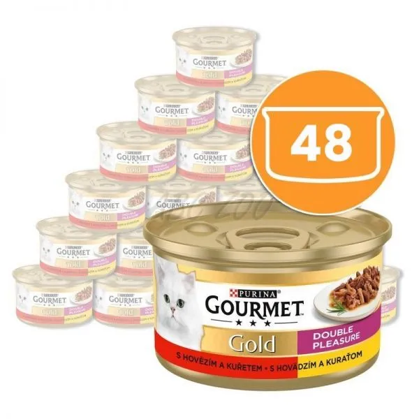 Gourmet Gold konzerva pre mačky hovädzie, kura 48x85 g