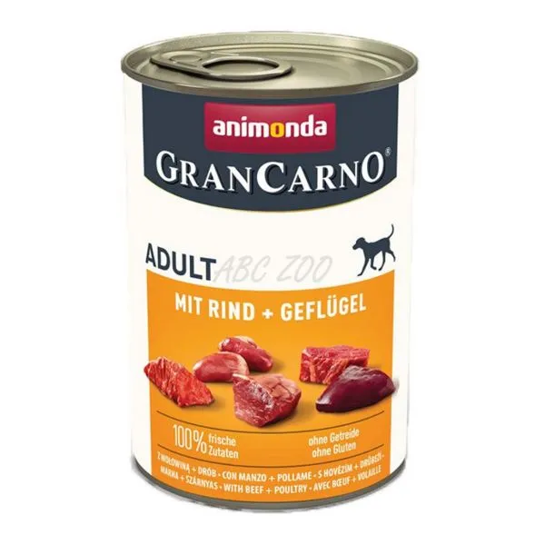 Animonda GranCarno Original je kompletné krmivo v konzerve pre dospelých psov (od 1 roka) vyrobené výhradne z čerstvého hovädzieho a hydinového mäsa.