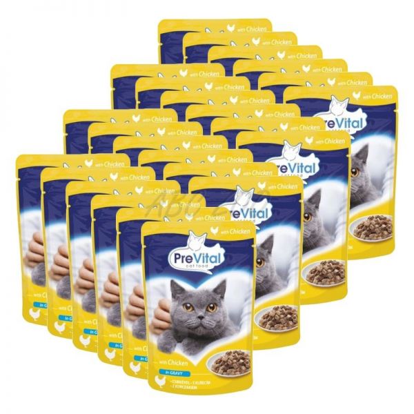 PreVital kapsička s kuracím mäsom v omáčke je kompletné a vyvážené krmivo pre dospelé mačky.