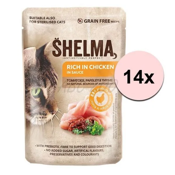 Shelma Cat Kapsička kuracie-paradajka-bylinky v omáčke 14 x 85 g