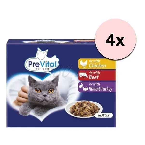PreVital Cat Kapsička kura/hovädzie/králik-morka v želé 48 x 100 g