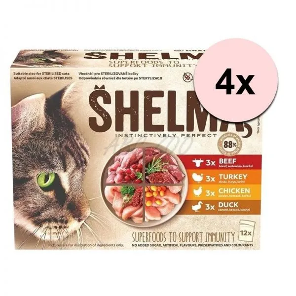 Shelma Cat Kapsička 4 druhy mäsa v omáčke 48 x 85 g