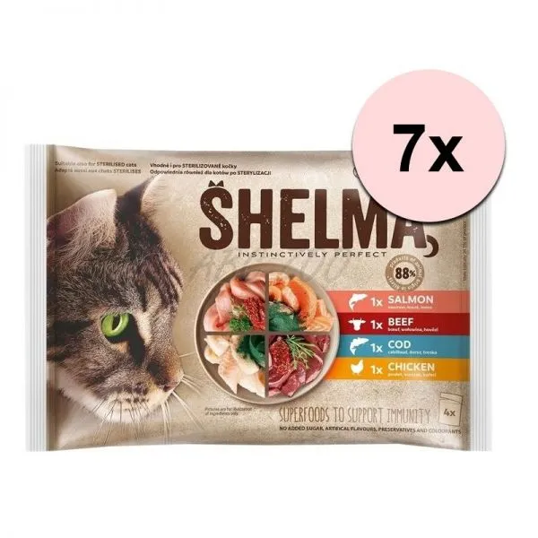Shelma Cat Kapsička mäso a ryby v omáčke 4 x 85 g
