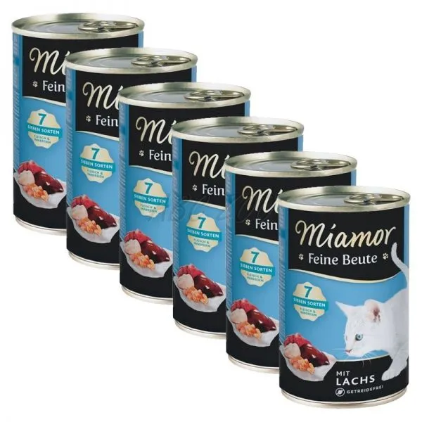 Miamor Feine Beute je lahodná a vyvážená konzerva s lososom pre dospelé mačky.