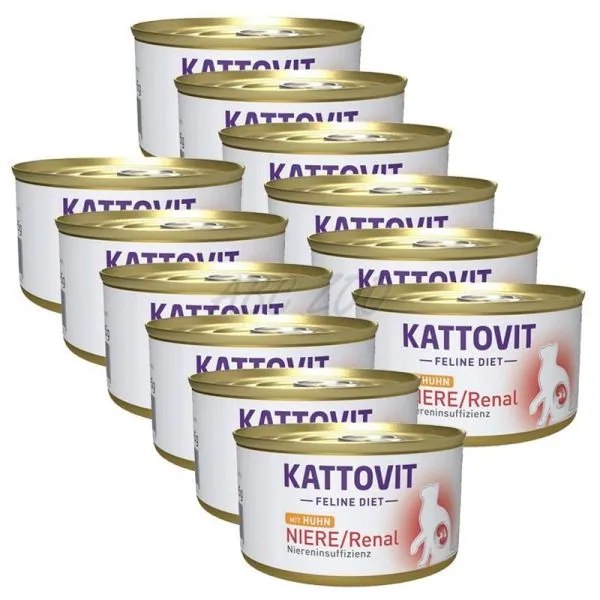 Kattovit konzerva je určená pre mačky s chorobou obličiek, podporuje funkciu obličiek pri chronickom zlyhaní – s príchuťou kuracieho mäsa.