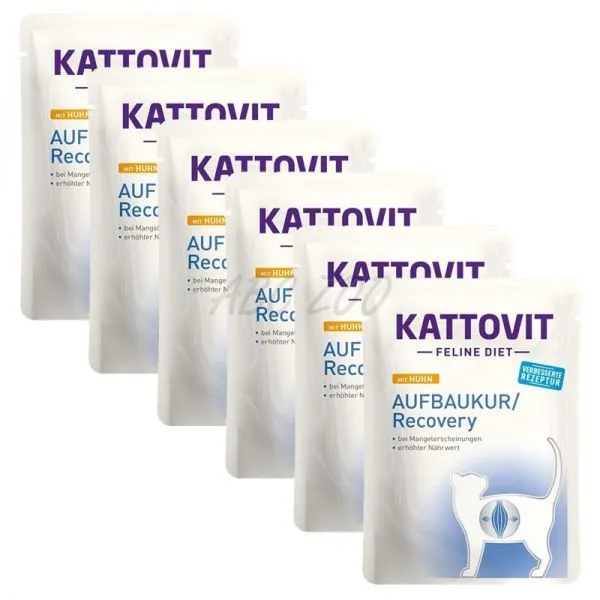 Kattovit Recovery kapsička je určená pre mačky s príznakmi nedostatku živín, podváhy, v rekonvalescencii – s kuracím mäsom.