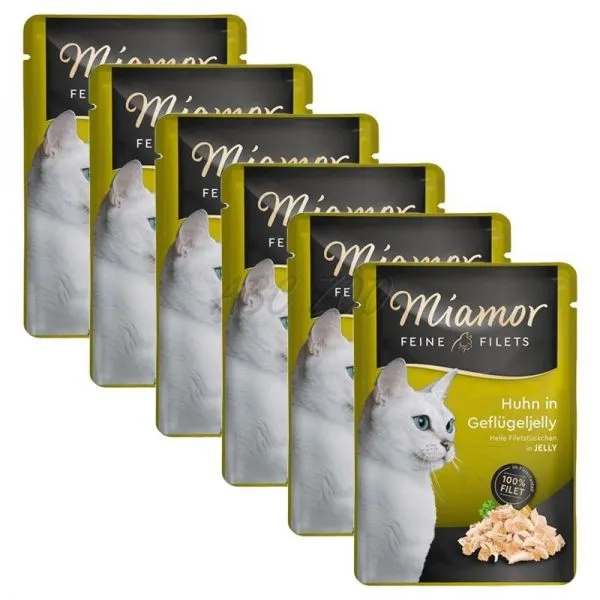 Miamor Feine Filets obsahuje len ľahké kuracie filety v lahodnom hydinovom želé pre dospelé aj staršie mačky.
