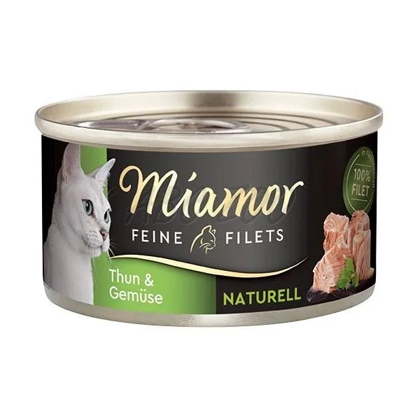 Miamor Feine Filets Naturell obsahuje len ľahké filety z tuniaka vo vlastnej šťave so zeleninou pre dospelé aj staršie mačky.