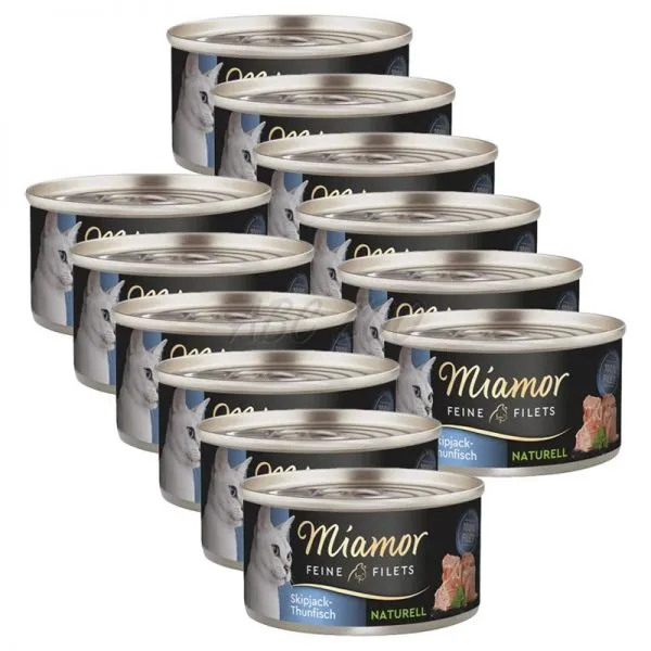 Miamor Feine Filets Naturell obsahuje len ľahké filety z tuniaka vo vlastnej šťave pre dospelé aj staršie mačky.