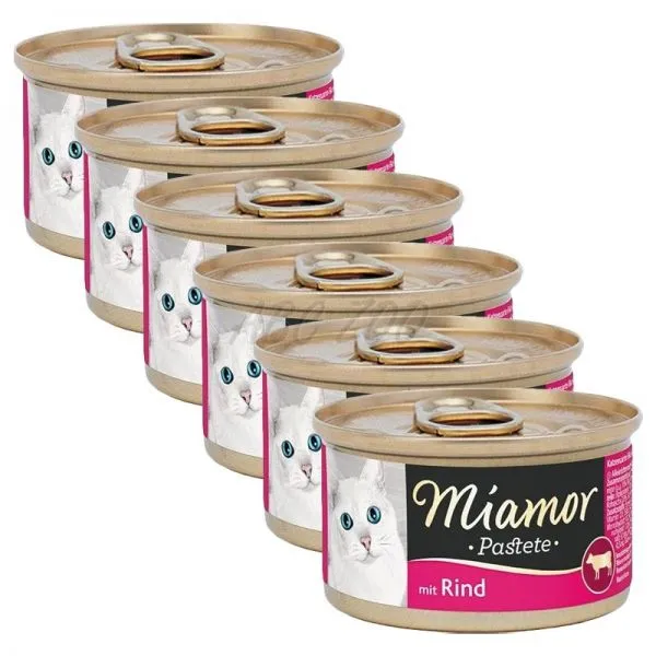 Miamor je kompletné krmivo pre dospelé mačky vo forme extra jemnej paštéty s hovädzím mäsom.