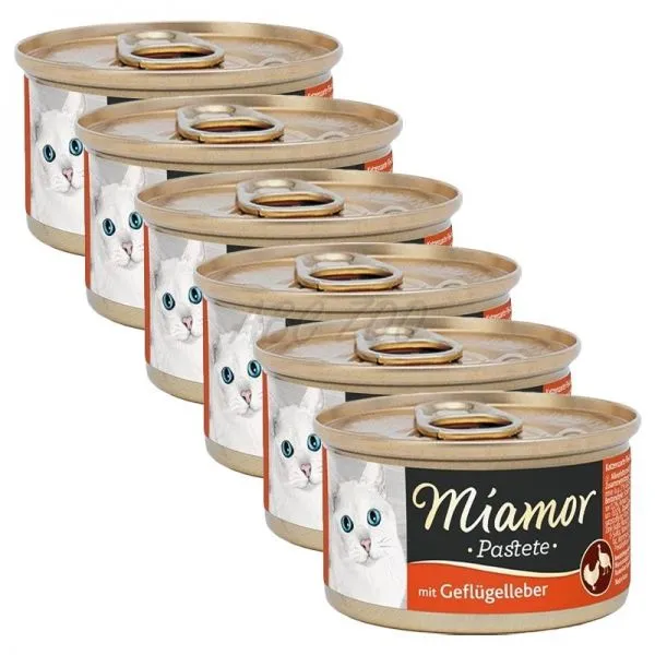Miamor je kompletné krmivo pre dospelé mačky vo forme extra jemnej paštéty s hydinovou pečeňou.