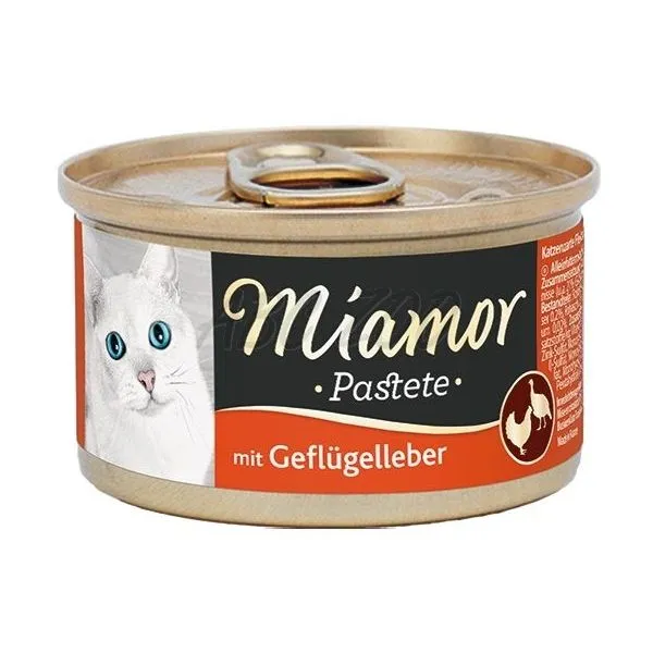 Miamor je kompletné krmivo pre dospelé mačky vo forme extra jemnej paštéty s hydinovou pečeňou.