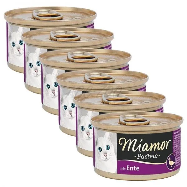 Miamor je kompletné krmivo pre dospelé mačky vo forme extra jemnej paštéty s kačicou.