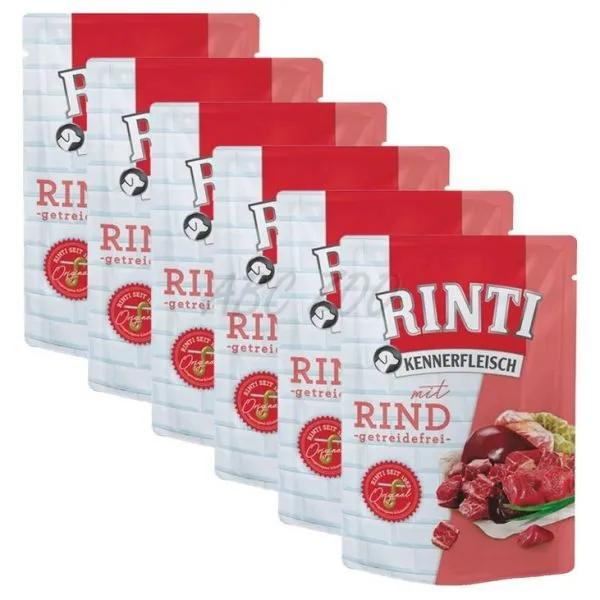 RINTI čerstvá mäsová kapsička bohatá na prírodné kúsky mäsa, vhodná pre dospelé psy.