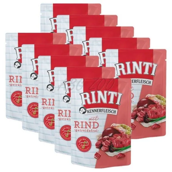 RINTI čerstvá mäsová kapsička bohatá na prírodné kúsky mäsa, vhodná pre dospelé psy.