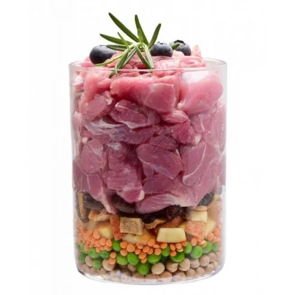 • čerstvý moriak s červenou šošovicou a proteínom žaburinky, bez obsahu obilnín a zemiakov