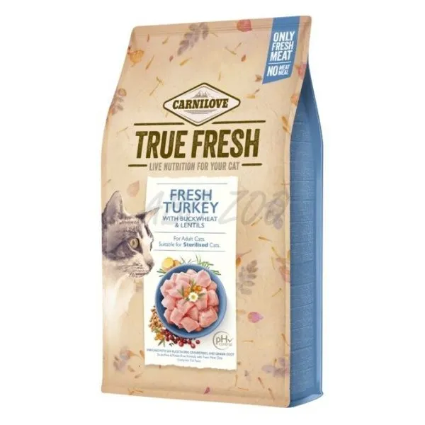Carnilove True Fresh Turkey je bezobilné krmivo s čerstvým morčacím mäsom pre dospelé mačky.