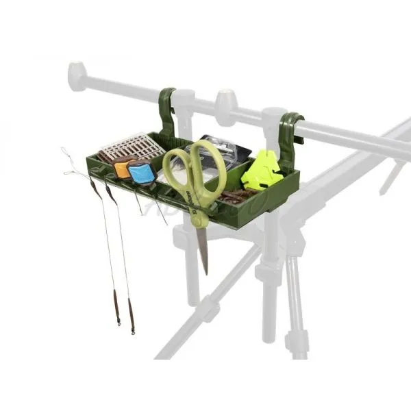 Polička slúži na uloženie rôzneho malého rybárskeho príslušenstva alebo nástrah, čo v praxi znamená, že všetky dôležité drobnosti využívané pravidelne počas lovu budete mať vždy po ruke, resp. pripravené priamo pri Vašich nahodených prútoch.