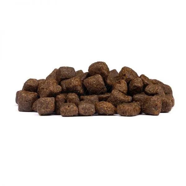 Zloženie: kačica 40% (čerstvá kačica 20%, sušená kačica 20%), batáty 31%, hrach 8%, hrachový proteín, šošovica 10%, kačací tuk 5%, kačací vývar 2%, minerálne látky, kurkuma (200 mg/kg), čučoriedky (200 mg/kg), spirulina (200 mg/kg), brusnice (200 mg/kg)