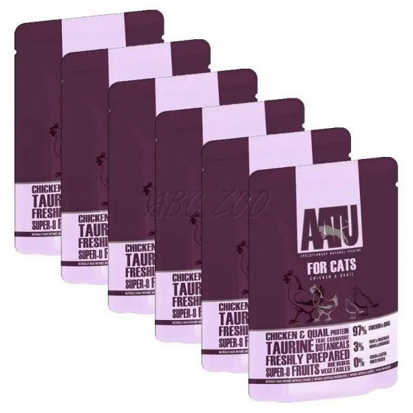 AATU For Cats je superprémiové vlhké krmivo bez obilnín, s kuracím a prepeličím mäsom pre dospelé mačky.