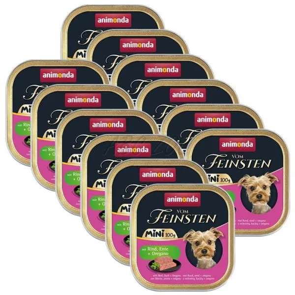 Animonda Vom Feinsten Mini vanička kombinuje hovädzie mäso s kačicou a oregánom, pre dospelé psy (1-6 rokov) malých plemien.