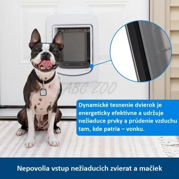 Prostredníctvom aplikácie My PetSafe® budete môcť svojim miláčikom nastaviť individuálne plány, ktoré im umožnia prístup cez dvere len v konkrétnych časoch. Notifikácie o pohybe si môžete skontrolovať na telefóne alebo inteligentných hodinkách. Dostávajte upozornenia, keď vaši domáci miláčikovia použijú dvere, keď budú zamknuté a podobne. Ak si všimnete búrku preháňajúcu sa mestom, pomocou telefónu na diaľku aktivujte viacbodový zámok na dvierkach, aby bol váš pes alebo mačka v bezpečí a zdravý vo vnútri. Dynamické tesnenie dvierok je energeticky účinné a udržuje nežiadúce prvky a prúdenie vzduchu tam, kde patria – von za dverami. Flap dvierok je vyrobený z odolného plastu a je zafarbený na ochranu súkromia, vďaka čomu nebudú žiadne zvedavé oči nazerať do vášej domácnosti.