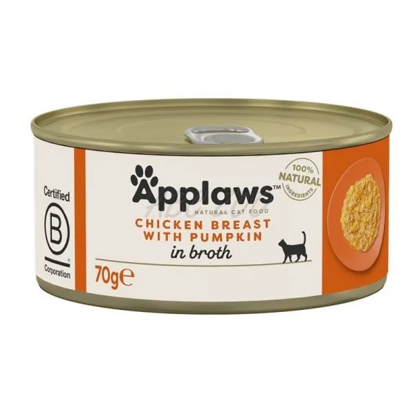 Applaws Chicken Breast with Pumpkin je prémiové prírodné krmivo pre mačky, vyrobené z vysoko kvalitných kuracích pŕs a tekvice v šťavnatom vývare.