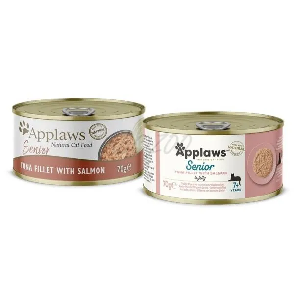 Applaws konzerva pre mačky Senior je prémiové prírodné krmivo špeciálne navrhnuté pre staršie mačky, obsahujúce vysokokvalitné tuniakové filé a lososa v lahodnom želé.