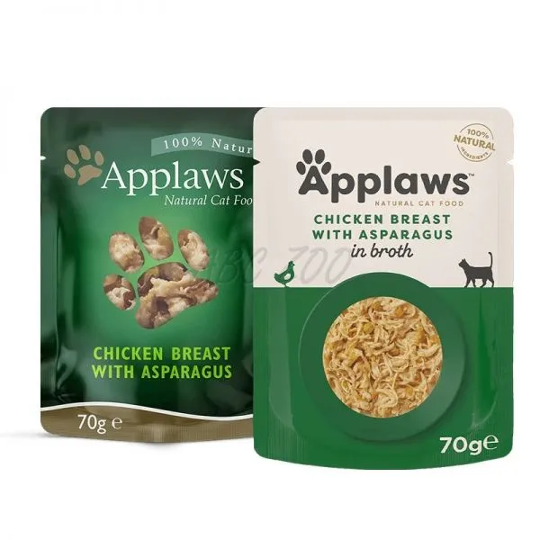 Applaws Chicken Breast with Asparagus in Broth je prémiové prírodné krmivo v kapsičke pre mačky, vyrobené z vysokokvalitného kuracieho mäsa a špargle v lahodnom vývare.