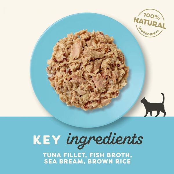Zloženie: Filet z tuniaka 70 %, rybí vývar, pražma 5 %, hnedá ryža
