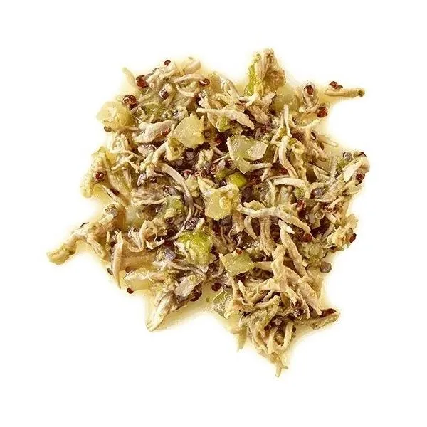 Zloženie: Kuracie prsia 45 %, kurací vývar, brokolica 10 %, jablko 10 %, quinoa 5 %, zemiakový škrob