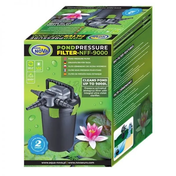 Aqua Nova NFF-9000 je ideálnym riešením pre udržanie čistej a zdravej vody vo vašom záhradnom jazierku, s dôrazom na jednoduchú údržbu a vysokú účinnosť filtrácie.