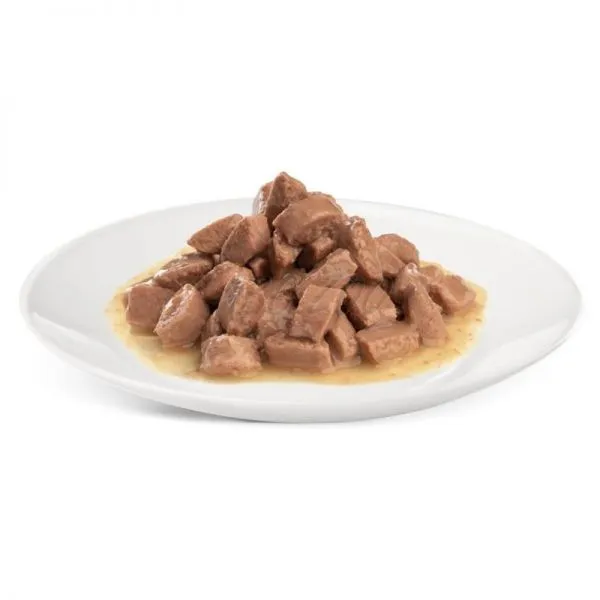 Vlhké krmivo v kapsičke prináša krehké kúsky mäsa v lahodnej omáčke a je výborným doplnením vyváženej výživy dospelých mačiek s citlivou kožou.