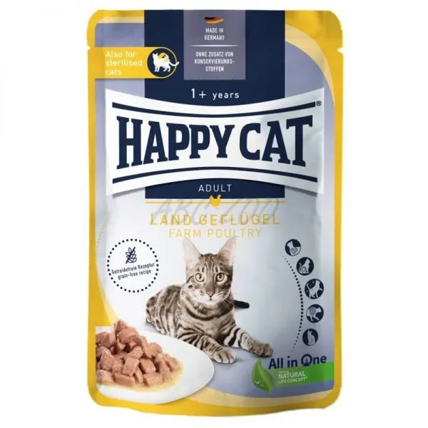 Kapsička Happy Cat s jemným hydinovým mäsom pre dospelé / kastrované mačky od 12. mesiacov.