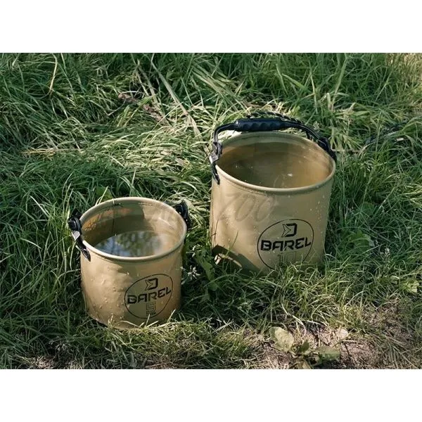 Delphin BAREL je užitočná pomôcka vyrobená z vodeodolného EVA materiálu, ktorý je pružný a ohybný a teda si vaše vedro viete poskladať na úplne minimálne rozmery. Slúži hlavne na polievanie rýb na podložke tesne po ich zdolaní a počas fotenia, avšak môže byť využité tiež ako malá zásobáreň vody na rôzne účely ako miešanie krmiva, alebo umývanie rúk a tiež ako ktorékoľvek iné vedro na uskladnenie náčinia, nástrah a podobne. Vedro BAREL je doplnené o pevnú rukoväť čiernej farby s povrazom, pomocou ktorého je možné nabrať si vodu aj z väčšej vzdialenosti od brehu alebo z menej prístupného brehu, či člna.