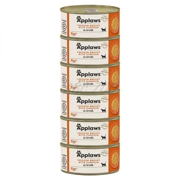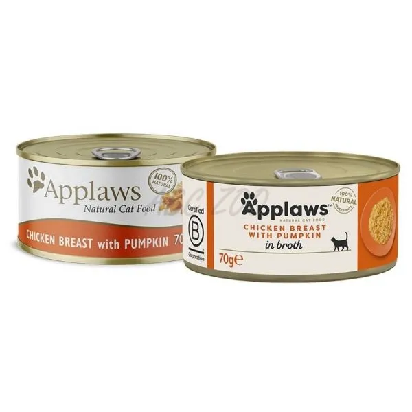 Applaws Chicken Breast with Pumpkin je prémiové prírodné krmivo pre mačky, vyrobené z vysoko kvalitných kuracích pŕs a tekvice v šťavnatom vývare.
