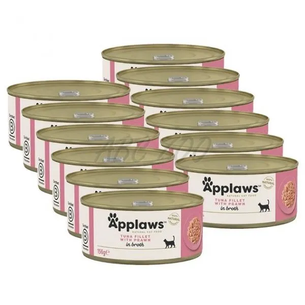 Applaws Konzerva pre mačky s tuniakom a krevetami vo vývare 12 x 156 g