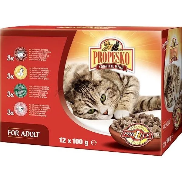 Propesko Cat Adult Kapsička hovädzie/kura/zverina/jahňa v omáčke 12 x 100 g