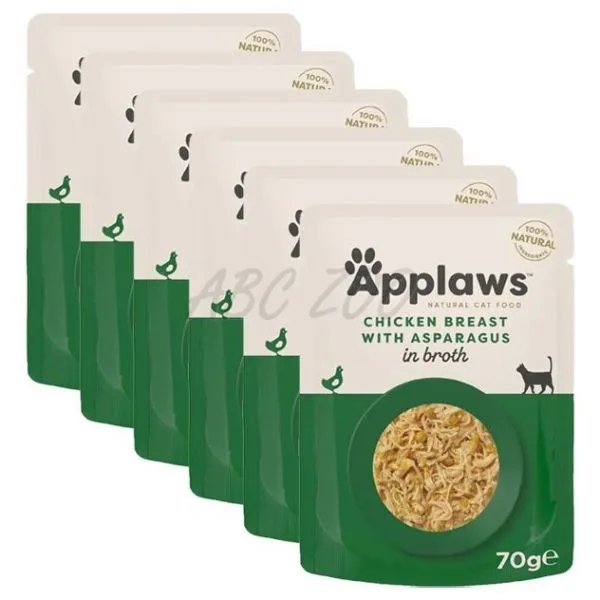 Applaws Chicken Breast with Asparagus in Broth je prémiové prírodné krmivo v kapsičke pre mačky, vyrobené z vysokokvalitného kuracieho mäsa a špargle v lahodnom vývare.