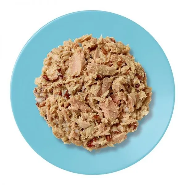 Zloženie: Filet z tuniaka 70 %, rybí vývar, pražma 5 %, hnedá ryža