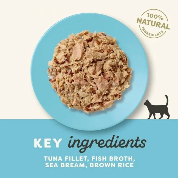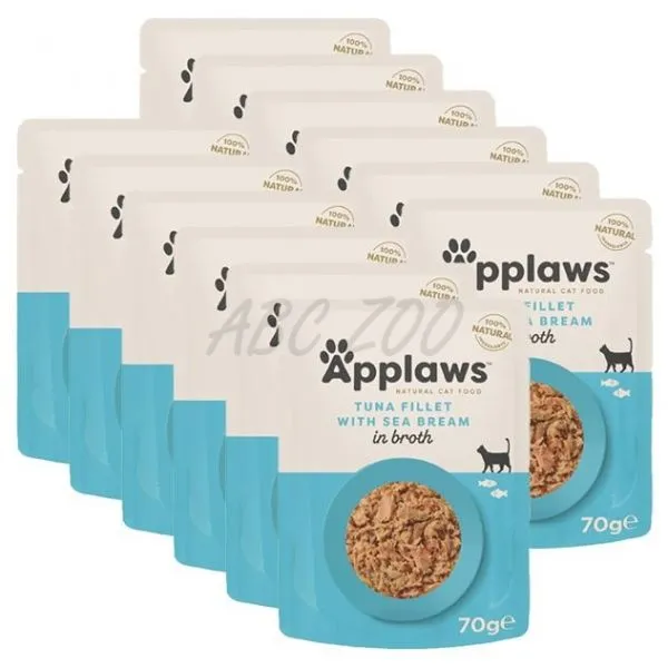 Applaws Tuna Fillet with Sea Bream in Broth je prémiové prírodné krmivo v kapsičke pre mačky, vyrobené z vysokokvalitného mäsa z tuniaka a pražmy v lahodnom vývare.