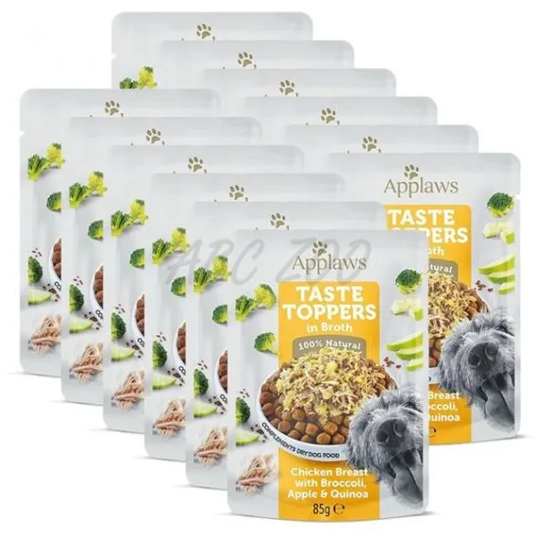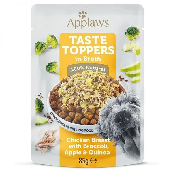 Applaws Dog Taste Toppers in Broth je prémiové prírodné krmivo v kapsičke pre psov s kuracími prsiami, brokolicou, jablkami a quinoou v lahodnom vývare.