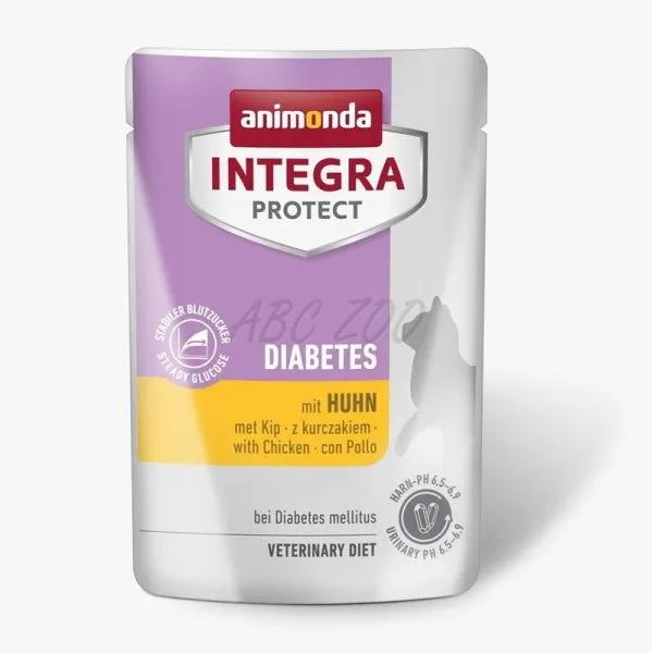 INTEGRA PROTECT Diabetes bol vyvinutý špeciálne pre mačky s diabetes mellitus. Aby sa zabezpečilo, že hladina cukru v krvi zostane po kŕmení čo najstabilnejšia, diétne jedlo by malo obsahovať veľa bielkovín a len malé množstvo sacharidov. To je dôvod, prečo INTEGRA PROTECT Diabetes obsahuje prevažne mäsité zložky bohaté na bielkoviny, ktoré dodávajú viac ako 45 % energetického obsahu.