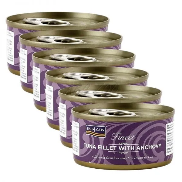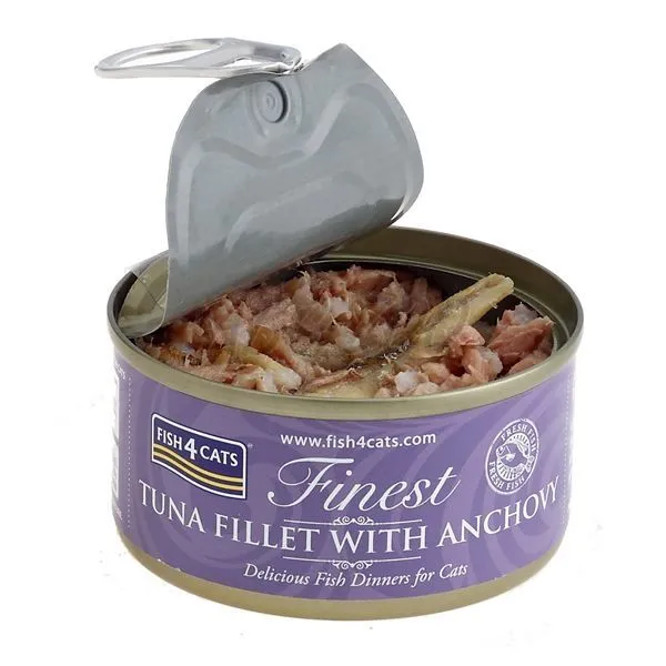 Fish4Cats Finest Tuna Fillet with Anchovy je konzerva pre mačky s tuniakom a ančovičkami, vyrobená z kvalitných rýb a zeleniny.