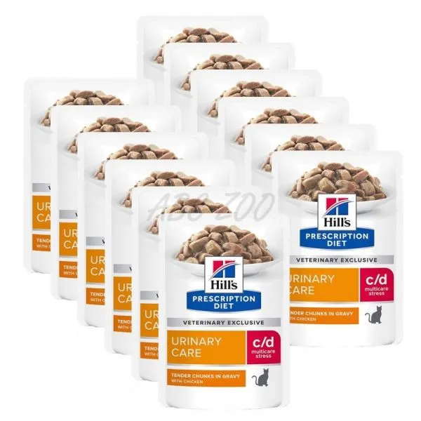 Krmivo pre mačky PRESCRIPTION DIET c/d Multicare Stress značky Hill‘s je klinická výživa so špeciálnym zložením podporujúcim urinárne zdravie vašej mačky a zároveň zvládanie stresu. Je klinicky dokázané, že krmivo pre mačky so zameraním na zmiernenie stresu znižuje mieru opätovného výskytu najbežnejších urinárnych príznakov o 89 %. Toto mokré krmivo pre mačky je vyrobené z kuracieho mäsa a má výbornú chuť, ktorú si vaša mačka obľúbi.